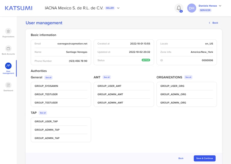 Web application for managing Katsumi user accounts: purchase and sale of invoices.