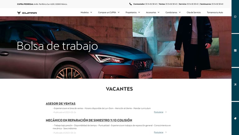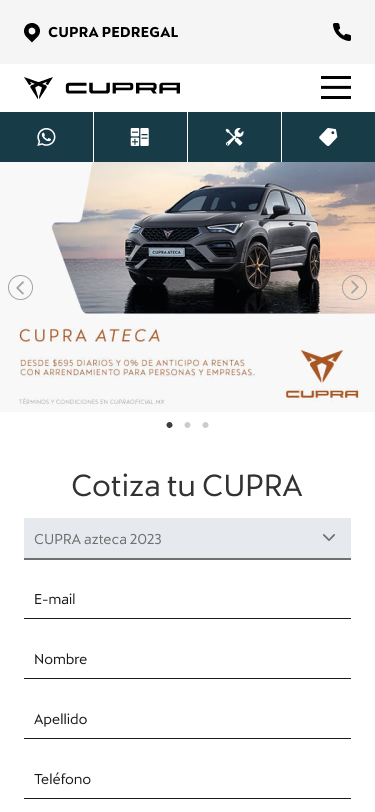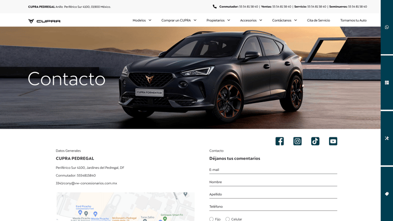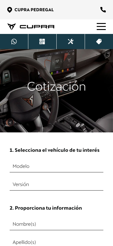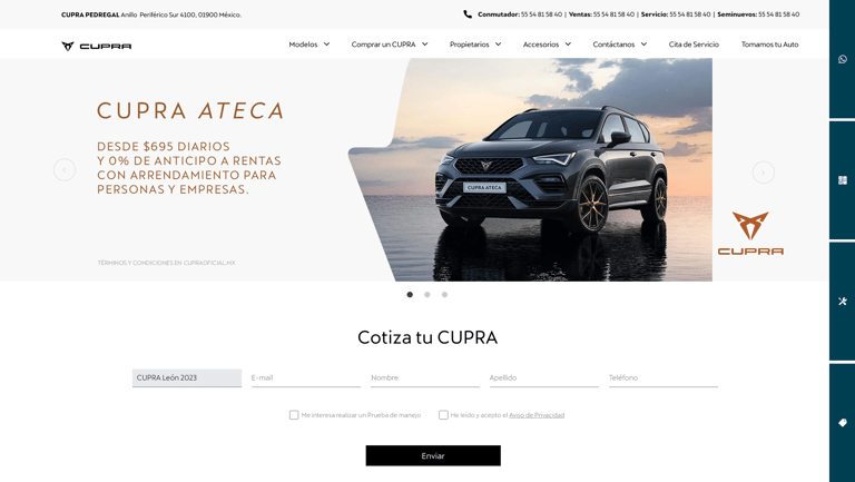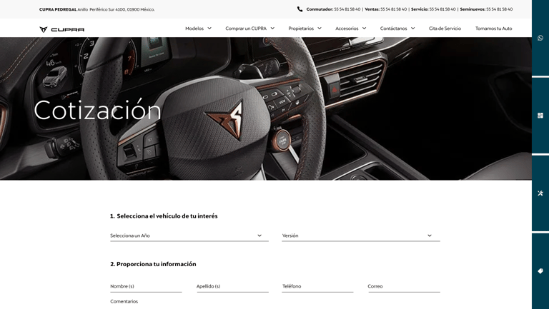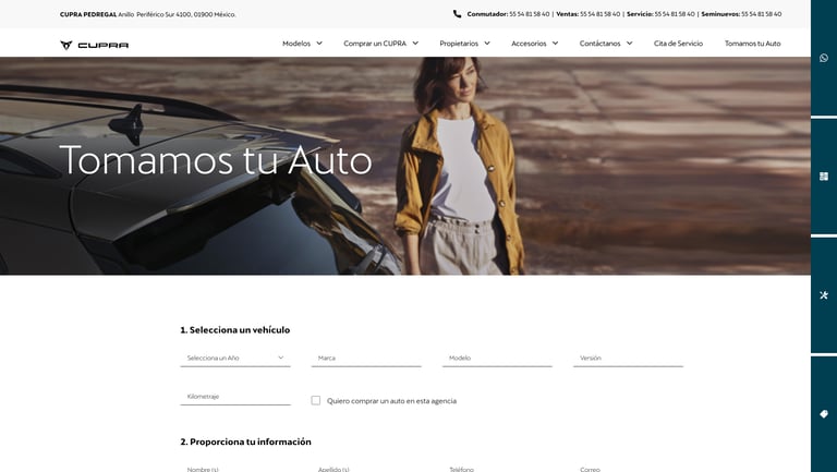Web and mobile application for cupra mexico.