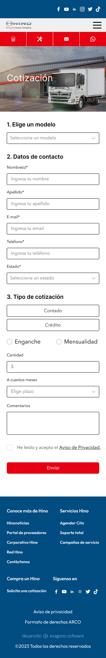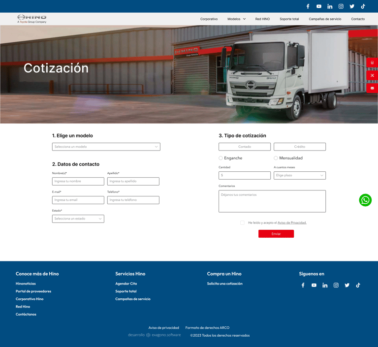 Web and mobile application for Hino Mexico.