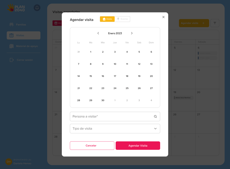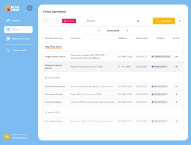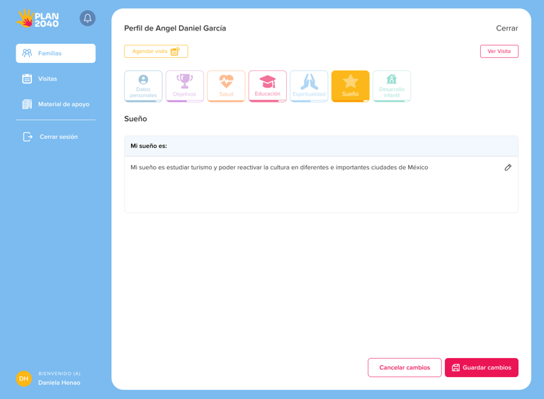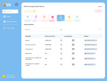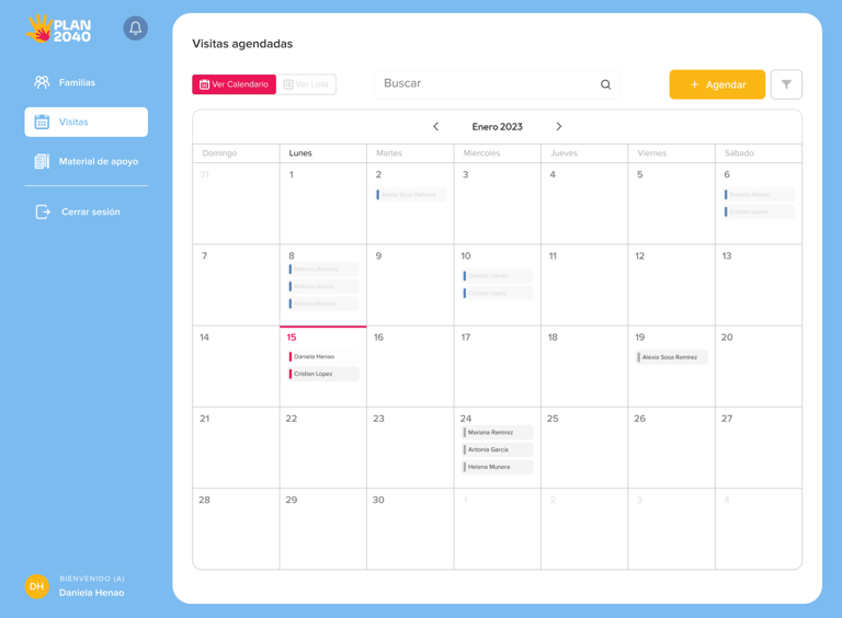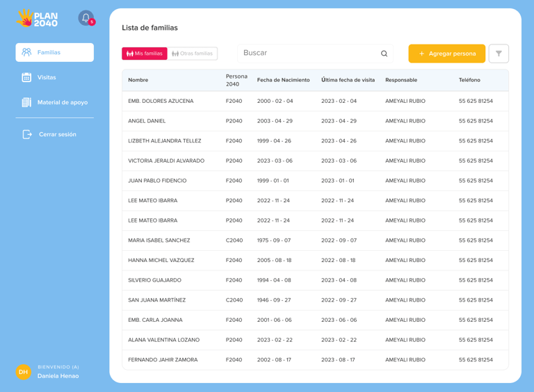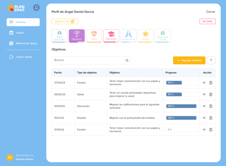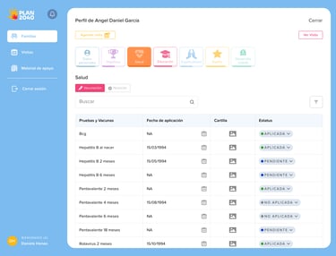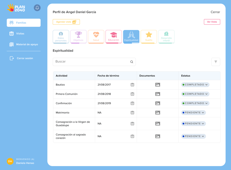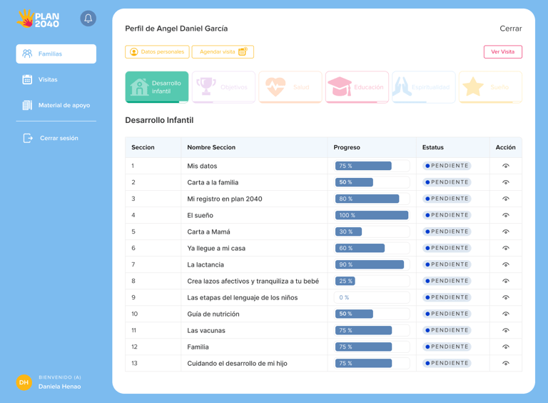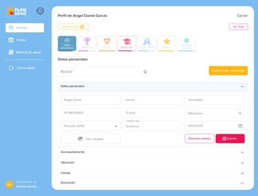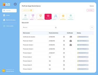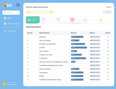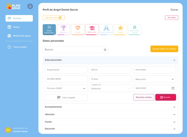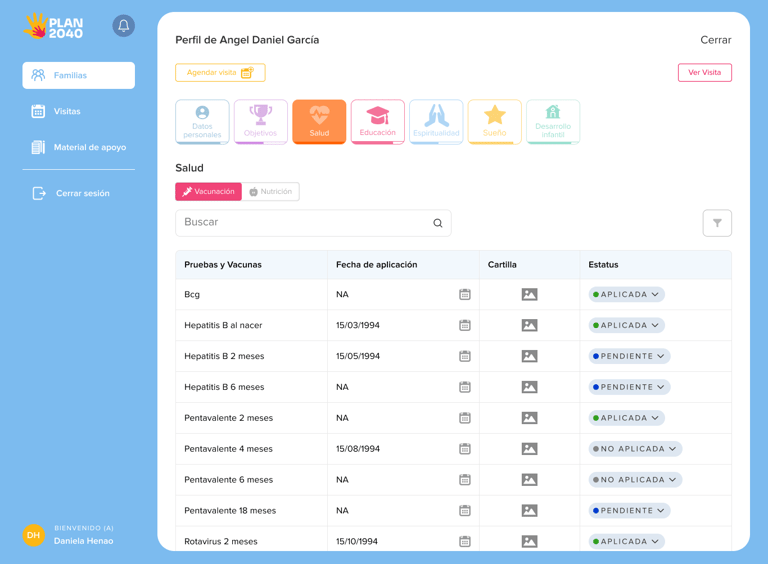 App for tablet, to maintain control and monitoring of children who are part of the 2040 plan foundation.